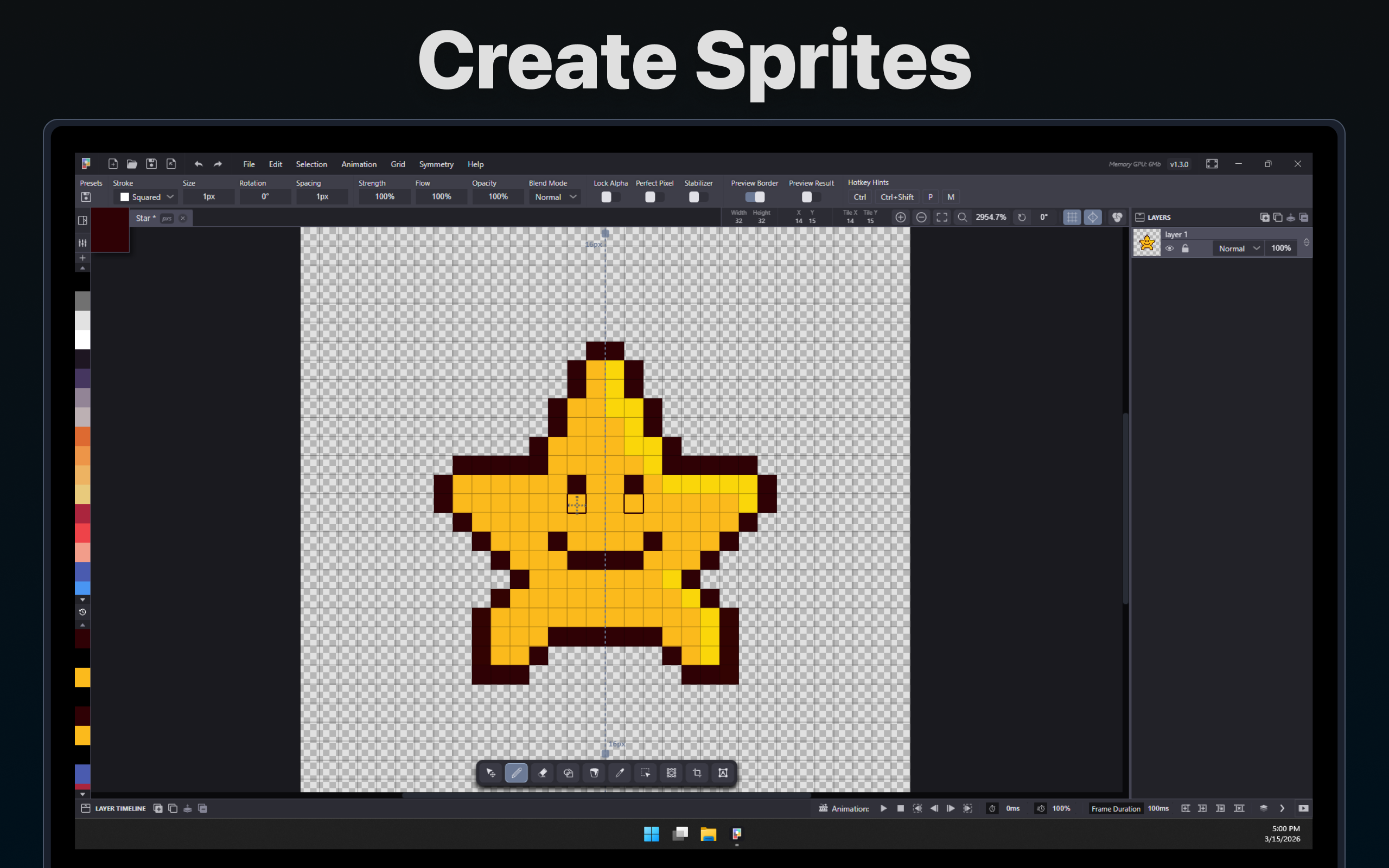 With PixSplat you can design pixel art, build animated sprites, edit textures and work with large images when needed. The interface is clean and efficient, helping you focus on creating and iterating quickly.